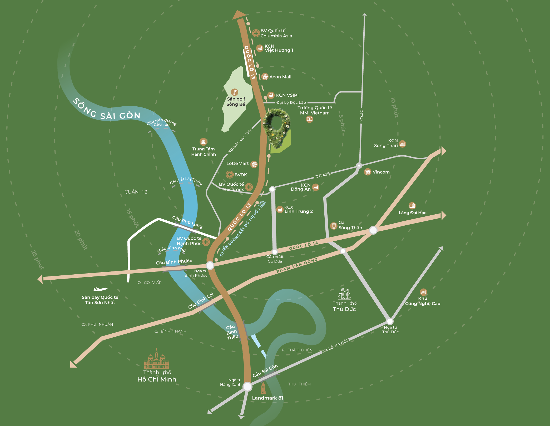 La Pura sở hữu vị trí đắc địa ngay mặt tiền Quốc lộ 13 mở rộng 60m – trục đại lộ tài chính, thương mại và dịch vụ lớn nhất Bình Dương. Với lợi thế 300m mặt tiền đất giá trị, dự án dễ dàng kết nối các tuyến giao thông huyết mạch liên kết TP. HCM, TP. Thủ Đức, TP. Dĩ An và TP. Thủ Dầu Một. Đặc biệt, tuyến Metro số 2 ngay trước thềm, mở ra nhịp sống hiện đại, thuận tiện và đẳng cấp cho cư dân.